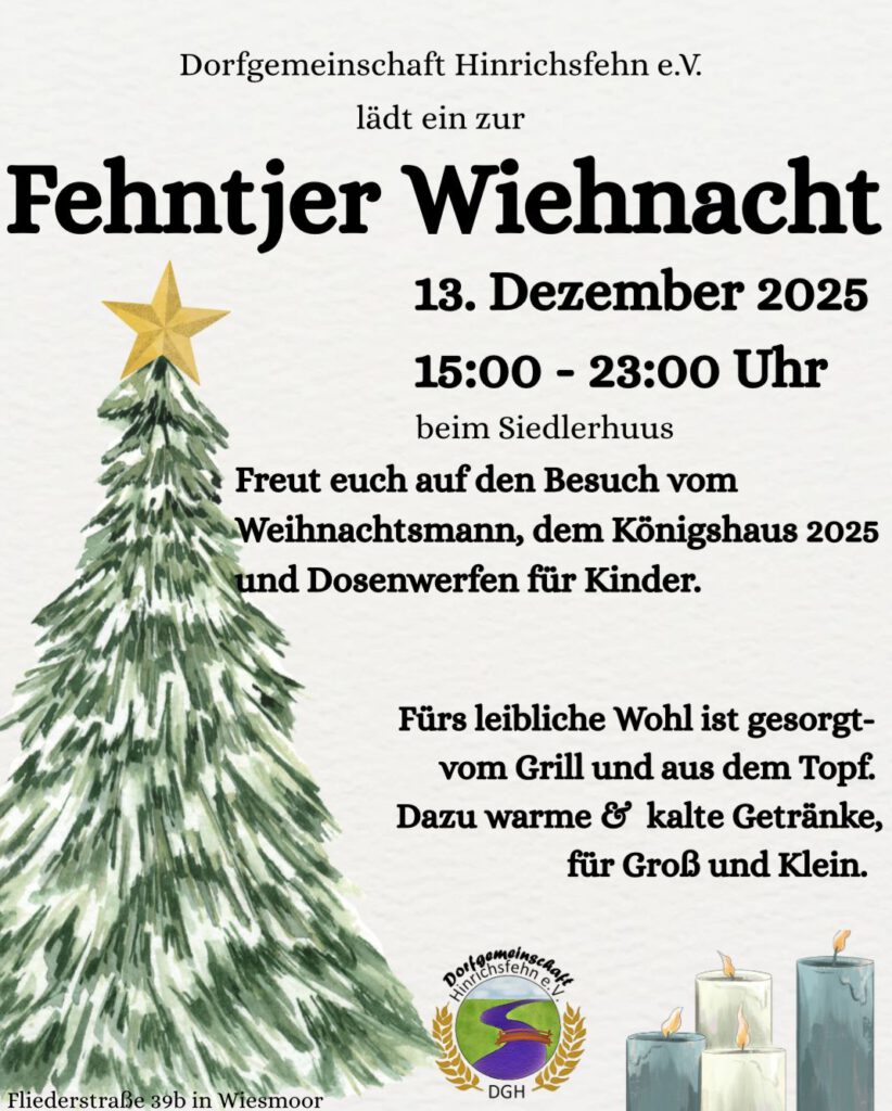 Beim Vorstand der Dorfgemeinschaft kam 1986 der Gedanke, auf diesem Gelände eine Grillhütte zu errichten. Nach vielen Gedanken hin und her wurde beschlossen eine 6eckige Hütte mit ca. 30 Sitzplätzen zu bauen. Willi Frerichs hatte schnell die Eckpfosten besorgt und Johann Eilers das Blech für`s Dach und die Seitenwände. An zwei Samstagen im Sommer 1987 wurde die Hütte aufgestellt. Am 19.September 1987 feierten wir Einweihung mit den Gemeindevertretern. Pastor Buchhagen von der Kirchengemeinde Hinrichsfehn/Mullberg überreichte uns ein Namensschild mit der Aufschrift: “Grillhütte der Dorfgemeinschaft Hinrichsfehn Erbaut Sept.1987“ im Namen der Kirchengemeinde.